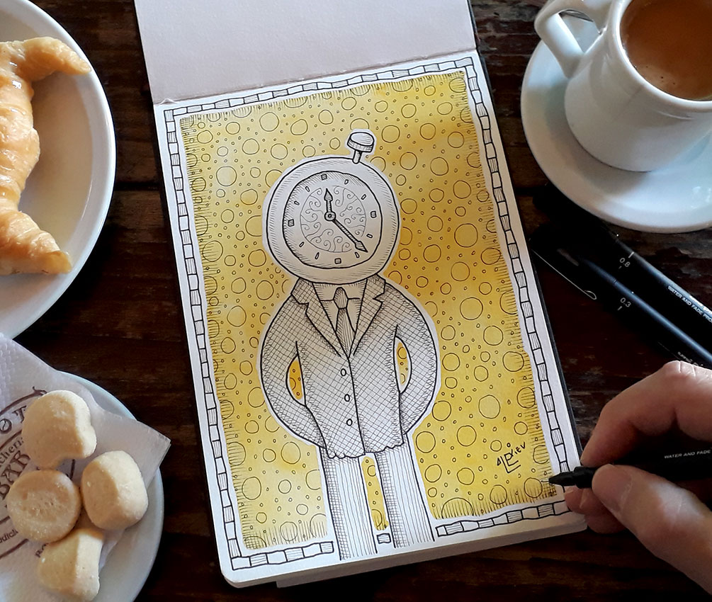 Dibujando en el bar Llama Coffee Roasters - Cecilia Grierson 222 - Bares de Buenos Aires