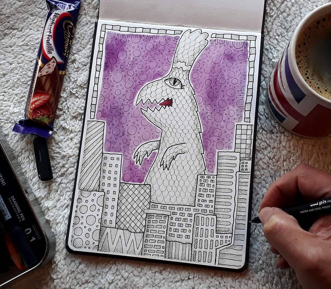 Godzilla en mi libreta Hahanemühle
